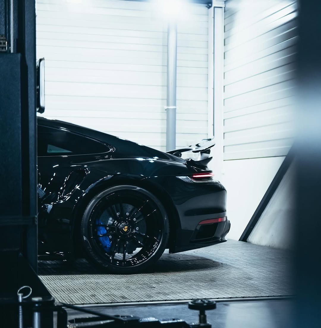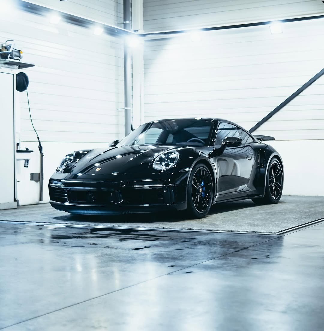 Deze gloednieuwe Porsche 911 Turbo S straalt kracht en klasse uit met zijn diepzwarte lak en subtiele blauwe accenten. Om deze schoonheid optimaal te beschermen en de uitstraling te versterken, hebben wij een volledige coatingbehandeling uitgevoerd.